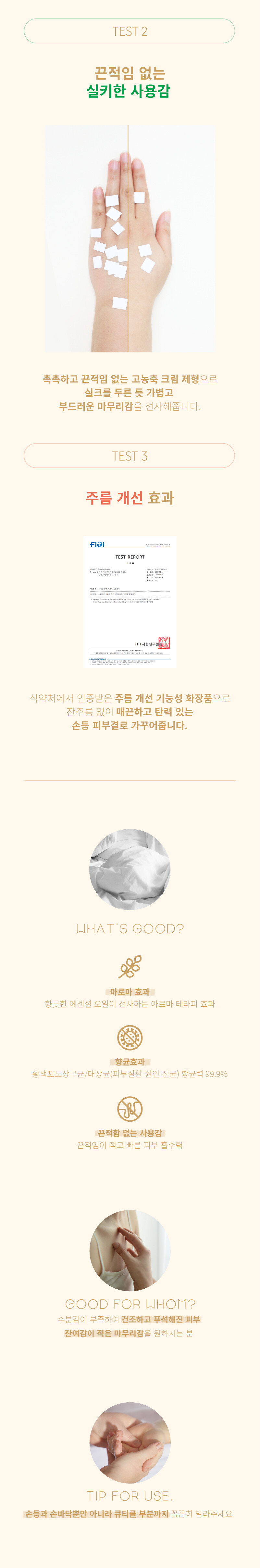 "실크처럼 매끄럽게 손에 감기는 은은한 허브양의 핸드베일, 바르자마자 겉돎없이 쏙-